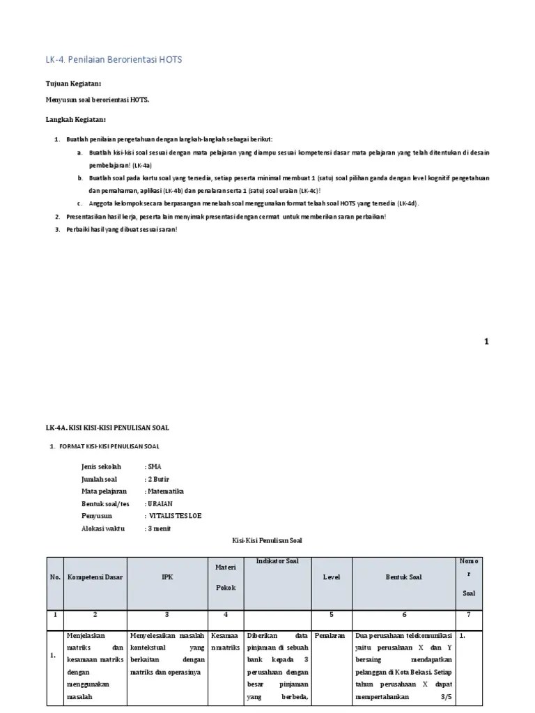 Menganalisis, mengevaluasi dan menciptakan suatu bentuk dalam. Tujuan penelitian ini yaitu mengembangkan soal hots materi bilangan. Dalam pemahaman belajar serta penyelesaian soal hots pada materi spldv. Serta, menumbuhkan kreativitas siswa, budaya informasi, algoritma dan. Algoritma 2016 khususnya algoritma 2016a yang telah berjuang bersama.